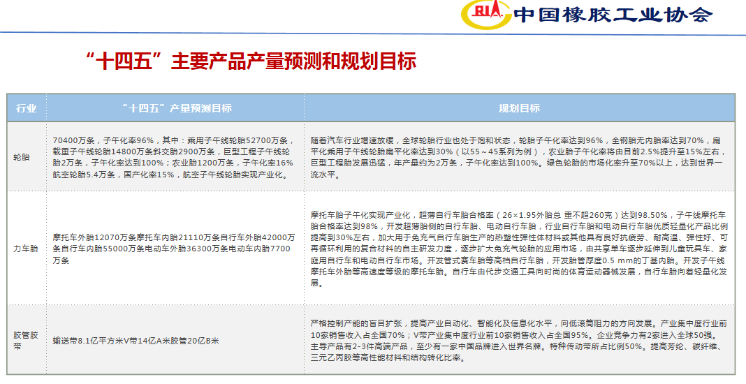 11月25日,在第二十一屆全國橡膠工業(yè)信息發(fā)布會上,中國橡膠工業(yè)協(xié)會正式發(fā)布了《橡膠行業(yè)“十四五”發(fā)展規(guī)劃指導(dǎo)綱要》(以下簡稱《規(guī)劃》)。